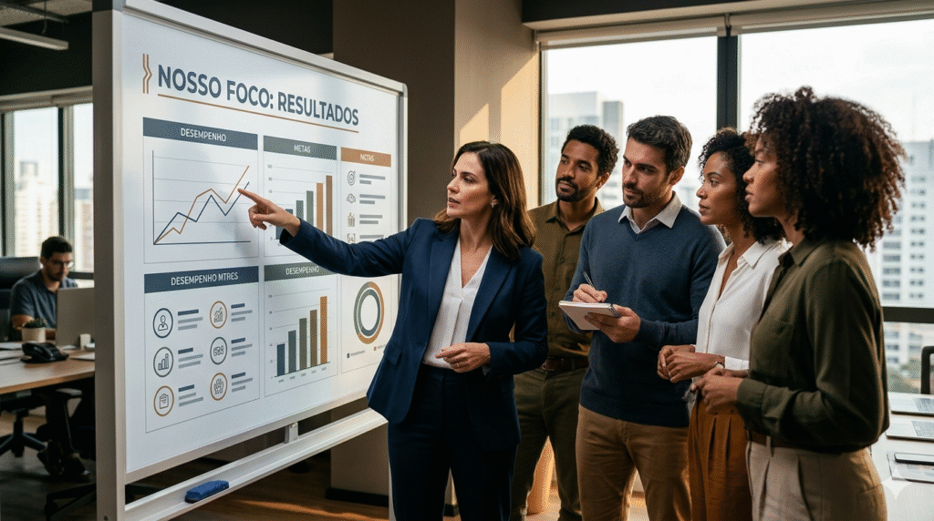 Indicadores simples e visíveis são mais poderosos do que dashboards complexos que ninguém lê. O que move equipes é clareza — saber onde estão, para onde vão e o que cada um pode fazer para contribuir.