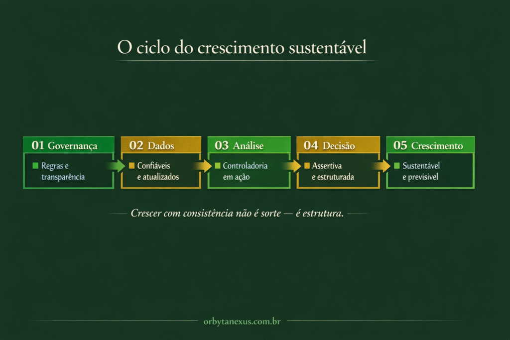 Crescimento sustentável não acontece por acaso. Ele é resultado de estrutura, clareza e direção. Empresas que escalam com consistência têm algo em comum: governança bem definida e controladoria integrada.