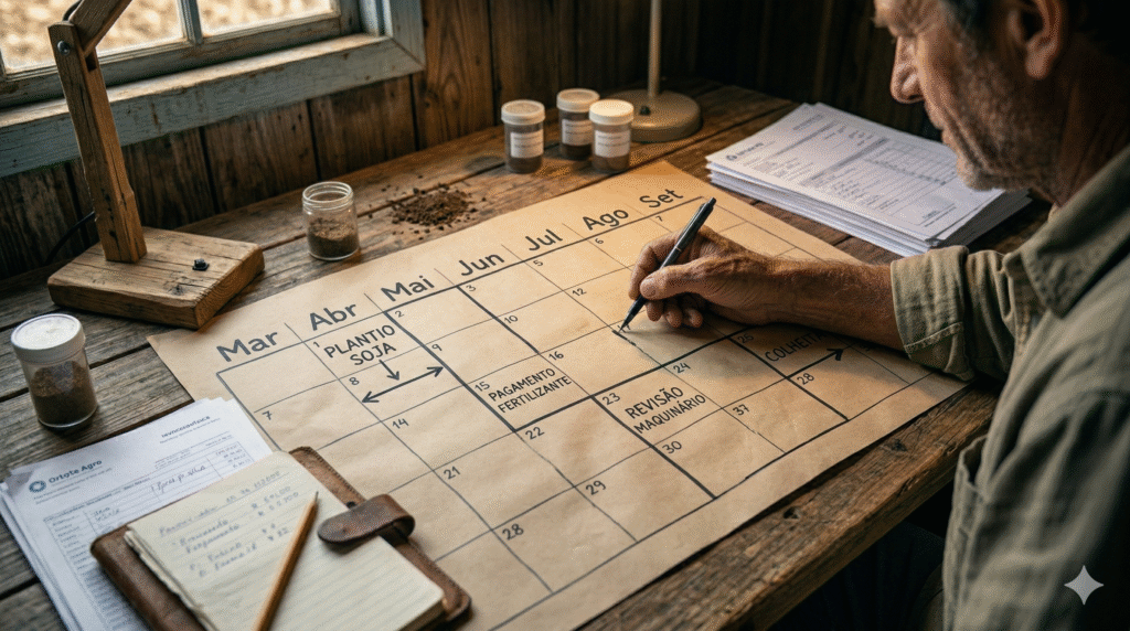 O planejamento de safra é decisivo porque ele conecta produção, custo e caixa. Não se trata apenas de definir o que plantar, mas de entender quanto custa plantar, quando o dinheiro sai, quando ele entra e qual margem é esperada. Sem isso, o produtor pode até colher bem — e ainda assim fechar a safra no aperto.